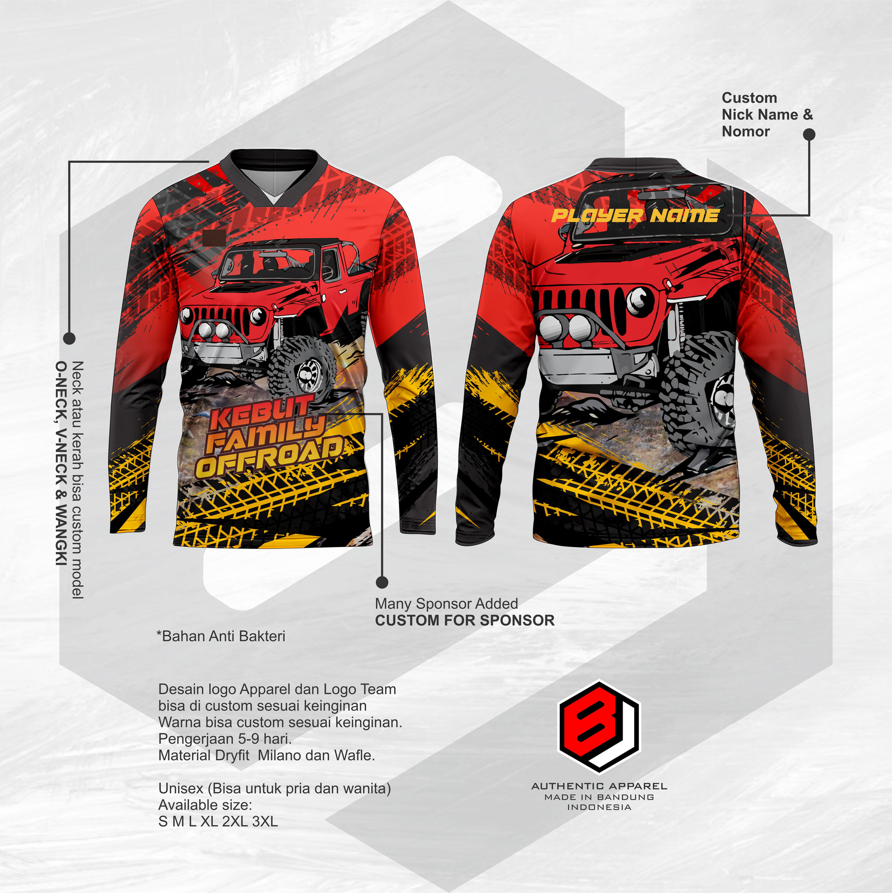 JERSEY CUSTOM GRATIS DESAIN, DIJAMIN MANTAP dengan bahan dri fit kualitas terbaik, lembut dan adem saat dipakai.